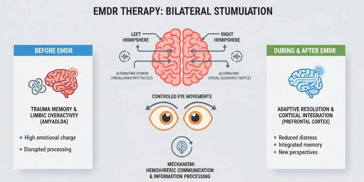 Using bilateral stimulation (such as eye movements, tapping, or tones), the brain is guided to reprocess distressing material.